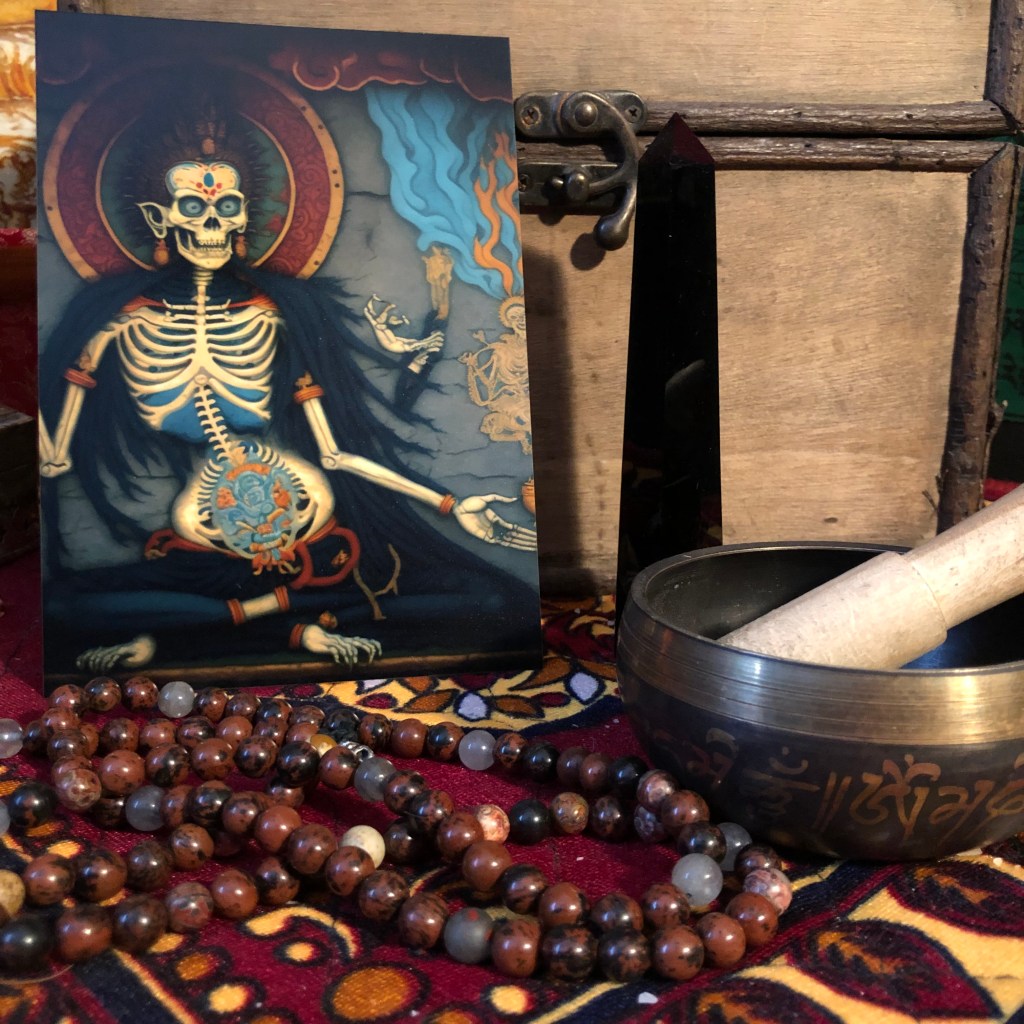 Kali is destruction and time. She is representative of the cycles of samsara, specifically birth, death, and rebirth. Despite this association, she is also a symbol of moksha (liberation), as she encourages effort (shakti) and action in one’s life to overcome obstacles and suffering.