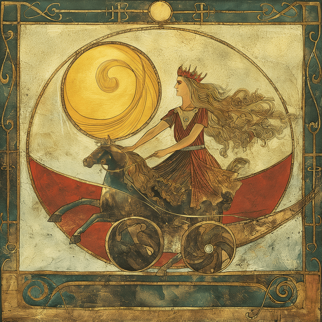 Sowilo is the rune of the Sun. In nearly all Indo-European languages, you will find this word in some form, all originating from the Proto-Indo-European root sóh₂wl̥, meaning “Sun.” This cosmic body represents one of humanities oldest “gods” or divinities, being associated with power, glory, triumph, health, and life. In most Germanic cultures, the Sun was viewed as a goddess, while the Moon represented a god. In the North, this goddess went by the name of Sunna (Sun) and was drawn across the sky by a chariot, chased by the great wolf Sköll (treachery). In other cultures, such as Greek, the Sun was viewed as masculine, residing under the name Hḗlios, which means “Sun, east, day, and sunshine.”